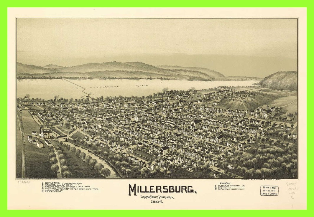 An 1894 birds-eye view [map] of Millersburg, Dauphin County, Pennsylvania.