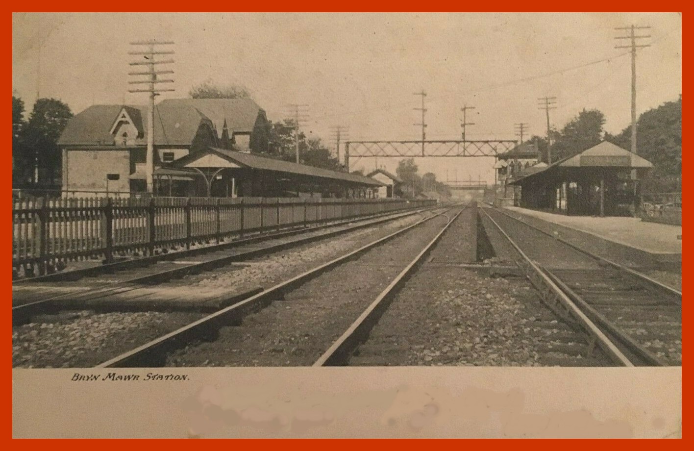 An undated photo post card view of the Pennsylvania Railroad Station at Bryn Mawr, Delaware County, Pennsylvania.