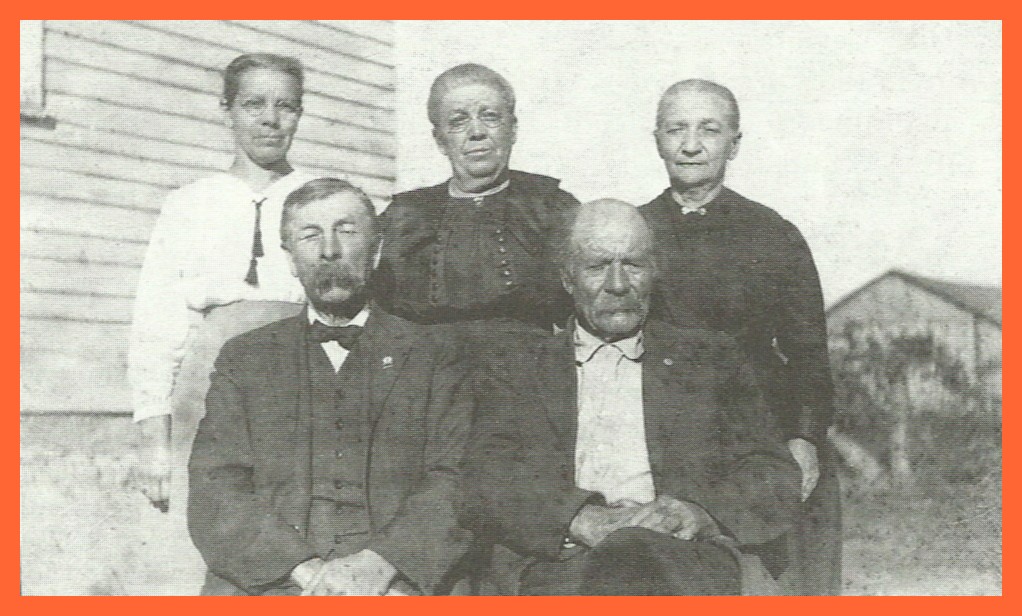 At a 1923 reunion of the Novinger family, a photograph was taken of children of Joseph N. Novinger (1810-1882) and Mary Ann [Harman] Novinger (1823-1898).