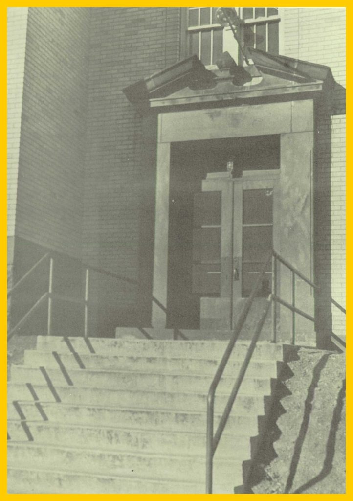 A 1953 photograph of the front entrance of the Coal Township High School, Coal Township, Northumberland County, Pennsylvania.