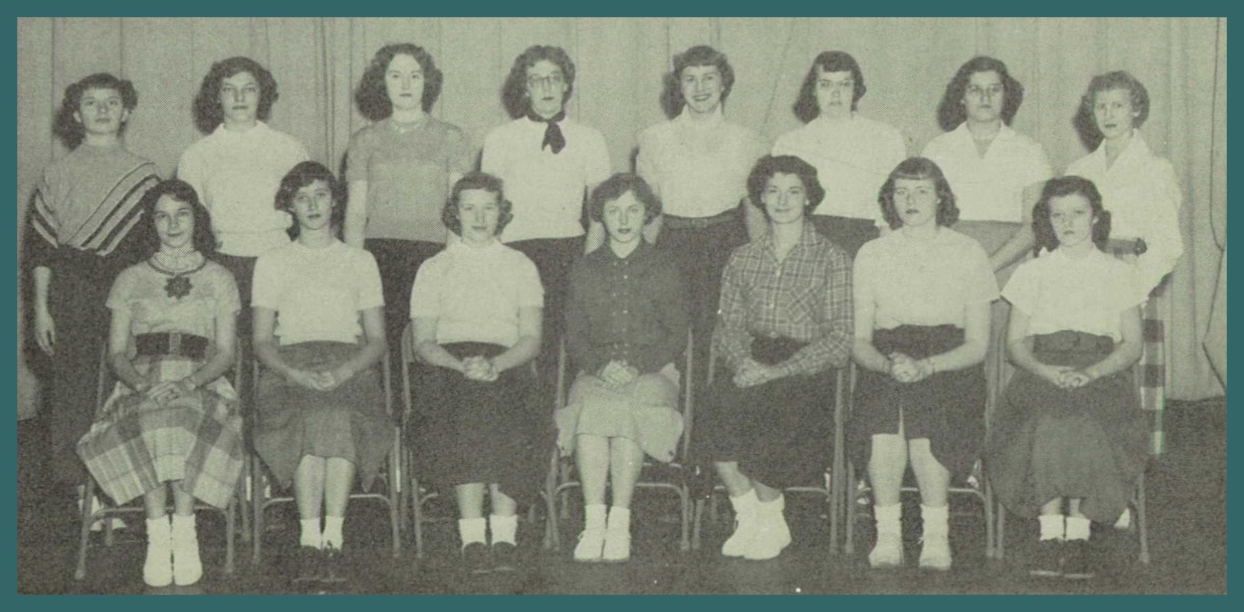 A 1953 photograph of the nursing club of the Coal Township High School, Coal Township, Northumberland County, Pennsylvania.