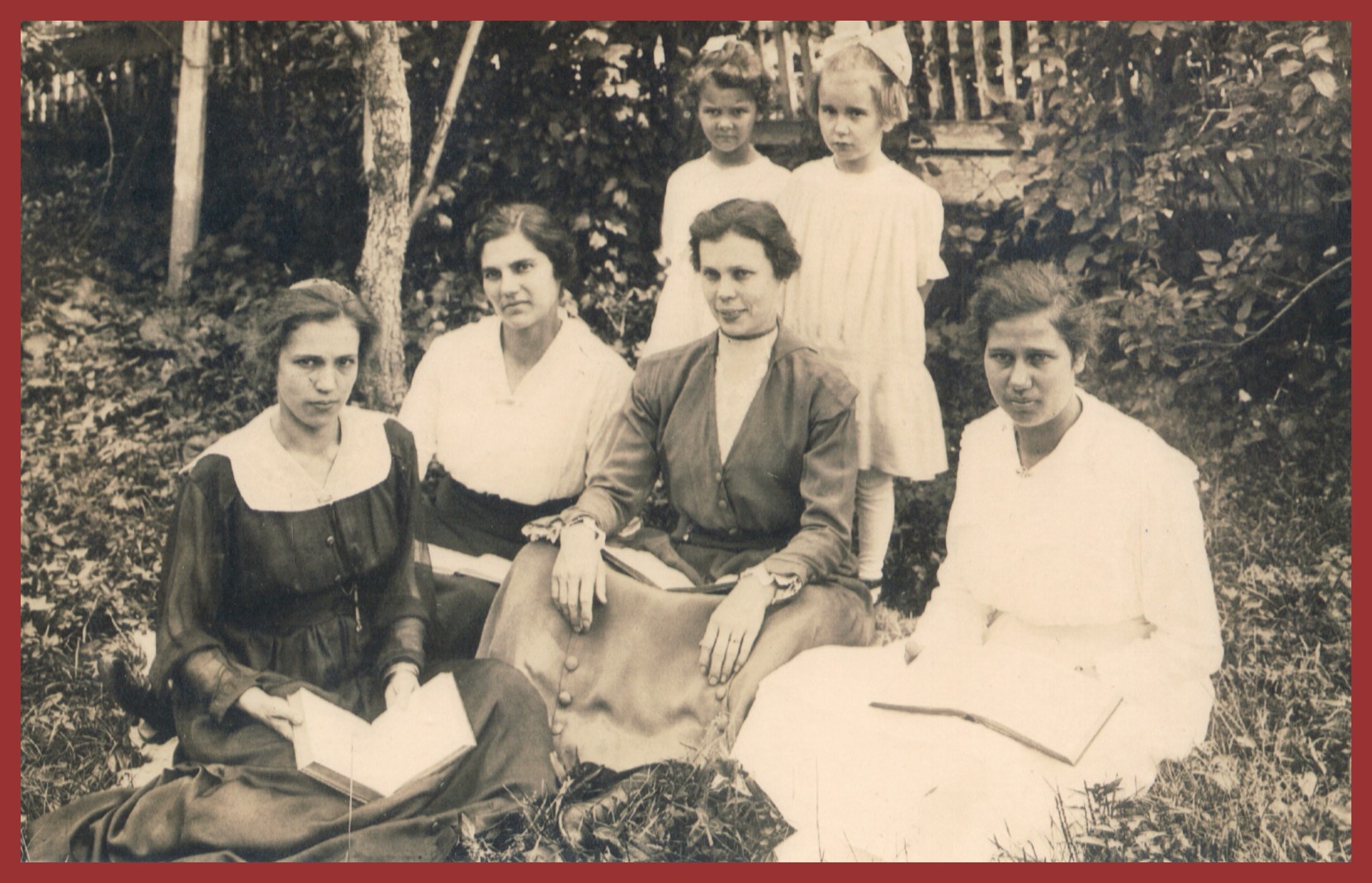 A photo post card from about 1917 of the daughters and granddaughters of William Evitts and Sarah Adaline [Daniel] Evitts of Specktown, Lykens Township, Dauphin County, Pennsylvania.