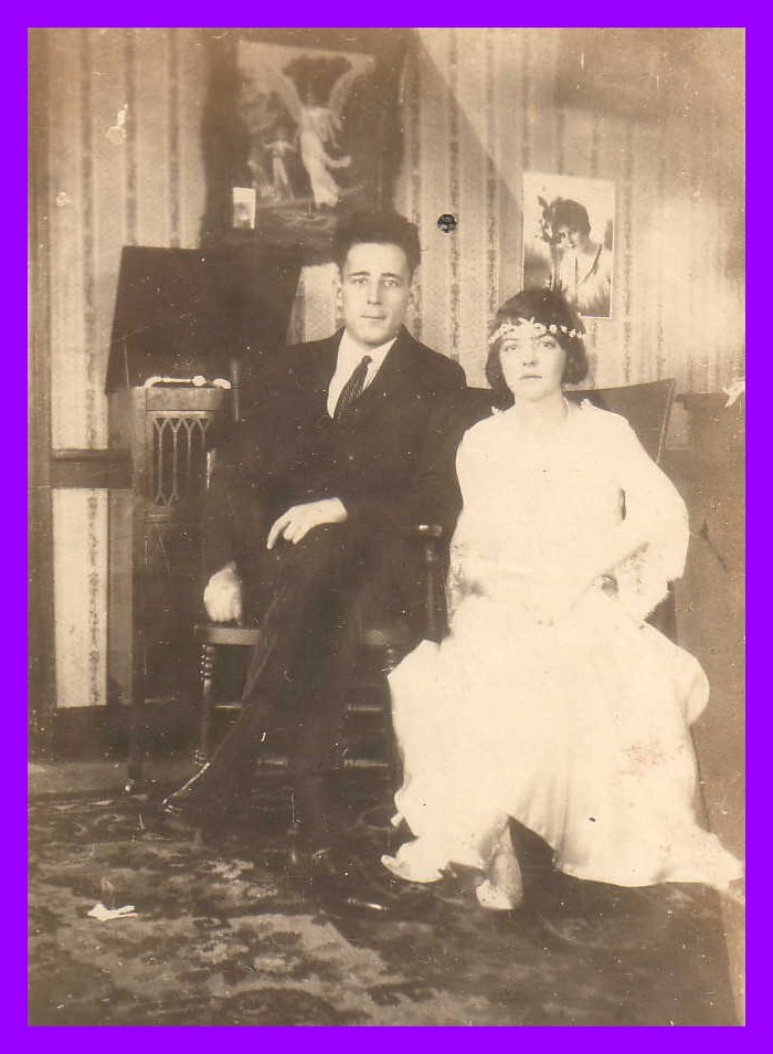 A wedding photograph taken about 1922 of Earl Dietrich (1898-1986) and Elaine [Anacker] Dietrich (1904-1979). It is not known where the photo was taken.