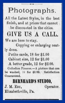 Collodion Process — A picture that can be washed, 12 for $3.00.  Satisfaction Guaranteed.