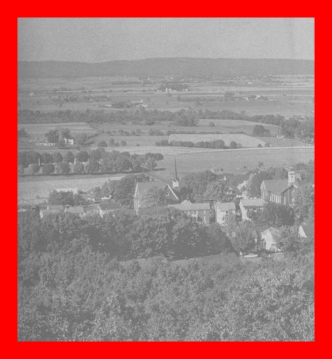 The left half of a 1957 photograph of a birdseye view of Elizabethville, Dauphin County, Pennsylvania, taken from Berry Mountain, looking north.