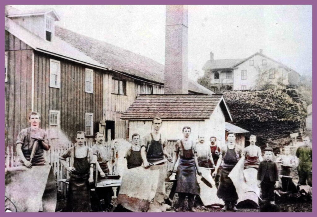 The Tannery, one mile east of town was built in 1860 by Augustus Bauder and was destroyed by fire in 1889.  G. Fred Gaupp who worked for Mr. Bauder went to Middletown after the fire, returned in 1892 and built a tannery on the site of the original one.  Several years later Mr. Gaupp and David Snyder formed a partnership.  In 1902 the business was incorporated by G. Fred Gaupp, Christian Gaupp, Allen Swab, Mark Swab, and Milton Moyer and operated as the Eagle Tanning Company.  Only harness leather was made and when horses were replaced by machinery and large tanneries absorbed small ones the business was discontinued about 1914.