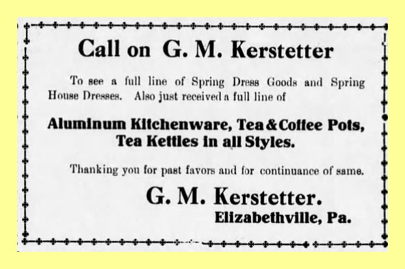 A 1915 newspaper advertisement for the G. M. Kerstetter Store, Elizabethville, Dauphin County, Pennsylvania.