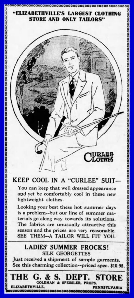 A July 1, 1926 advertisement for “The Department Store” operated by Goldman & Spessler in Elizabethville, Dauphin County, Pennsylvania.