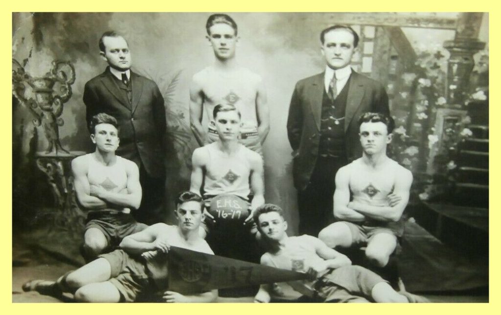 A 1917 photograph of the basketball team of the Elizabethville High School, Elizabethville, Dauphin County, Pennsylvania.
