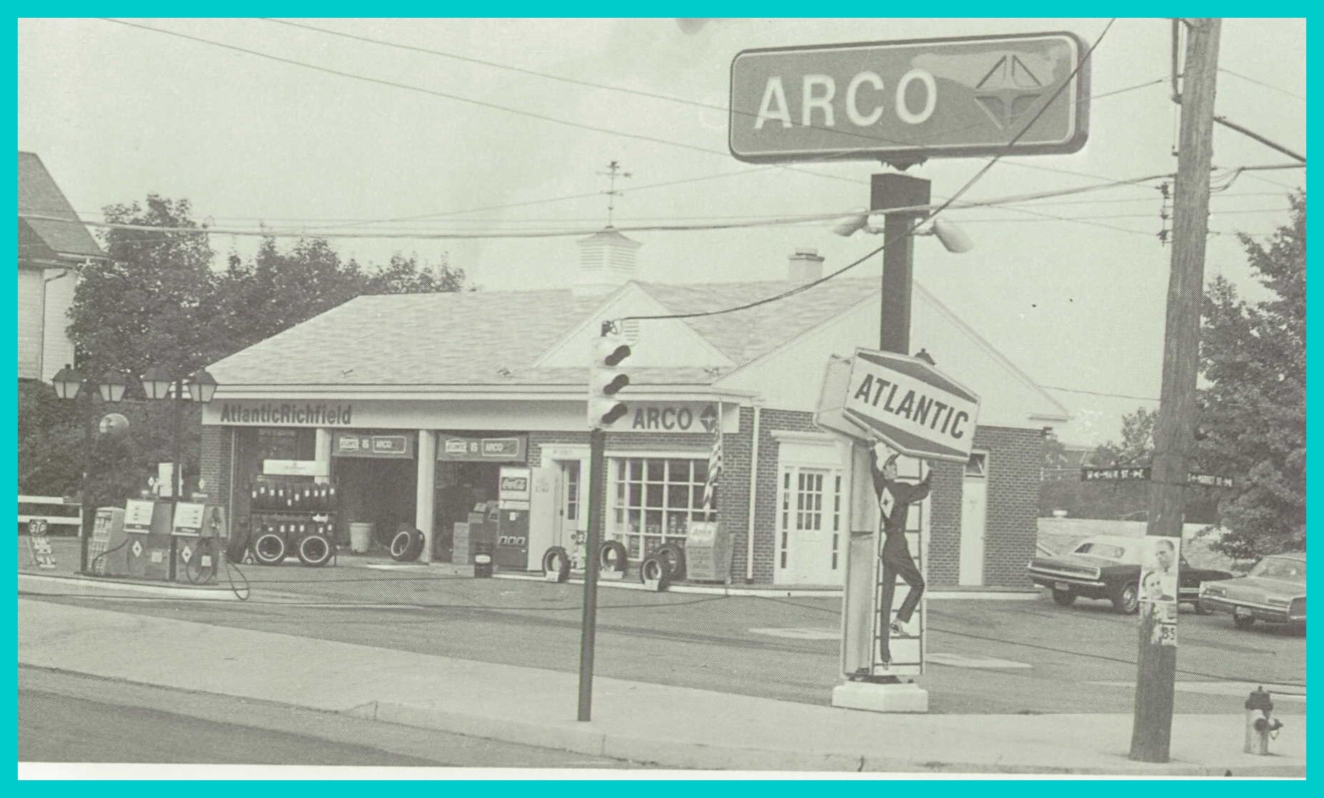A 1971 photograph from an advertisement for Kuppy’s Arco Service Station, Main and Market Streets, Elizabethville, Dauphin County, Pennsylvania.