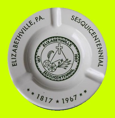 A photograph of the bottom of a commemorative ash tray issued for the Elizabethville Sesquicentennial, 1817-1967, Elizabethville, Dauphin County, Pennsylvania.