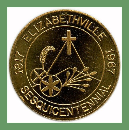 A photograph of the face of a commemorative medal issued for the Elizabethville Sesquicentennial, 1817-1967, Elizabethville, Dauphin County, Pennsylvania.