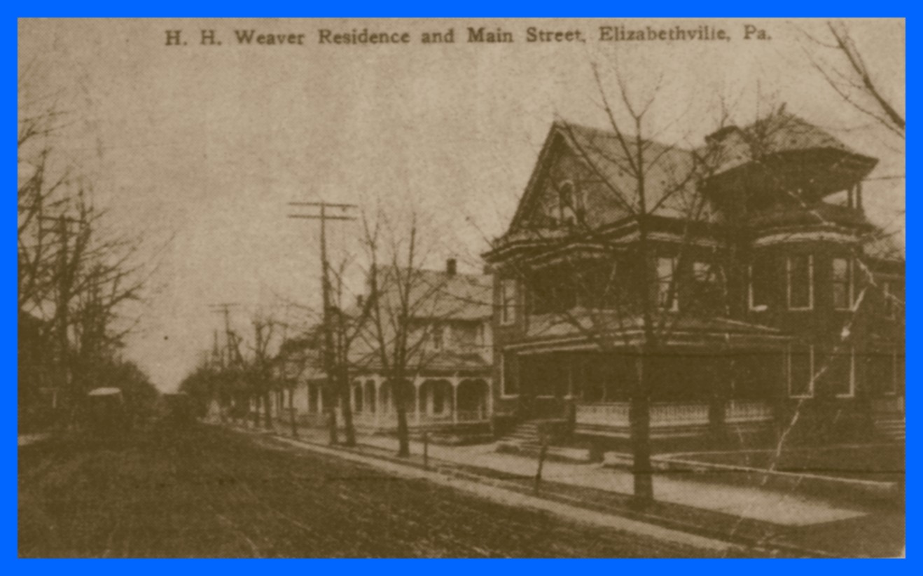 An undated picture post card view of the Harry H. Weaver residence on Main Street in Elizabethville, Dauphin County, Pennsylvania. The photograph was probably taken just after the 1900.
