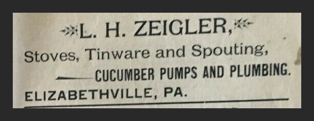 An 1894 advertisement for L. H. Zeigler, Elizabethville, Dauphin County, Pennsylvania.