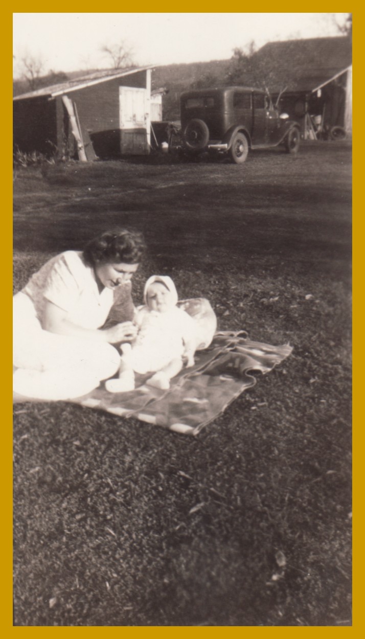 A summer 1947 photograph documenting an early visit of the second grandchild of William E. “Bill” Dietrich and Helen [Hoffman] Dietrich (1895-1977) to Specktown, Lykens Township, Dauphin County, Pennsylvania.