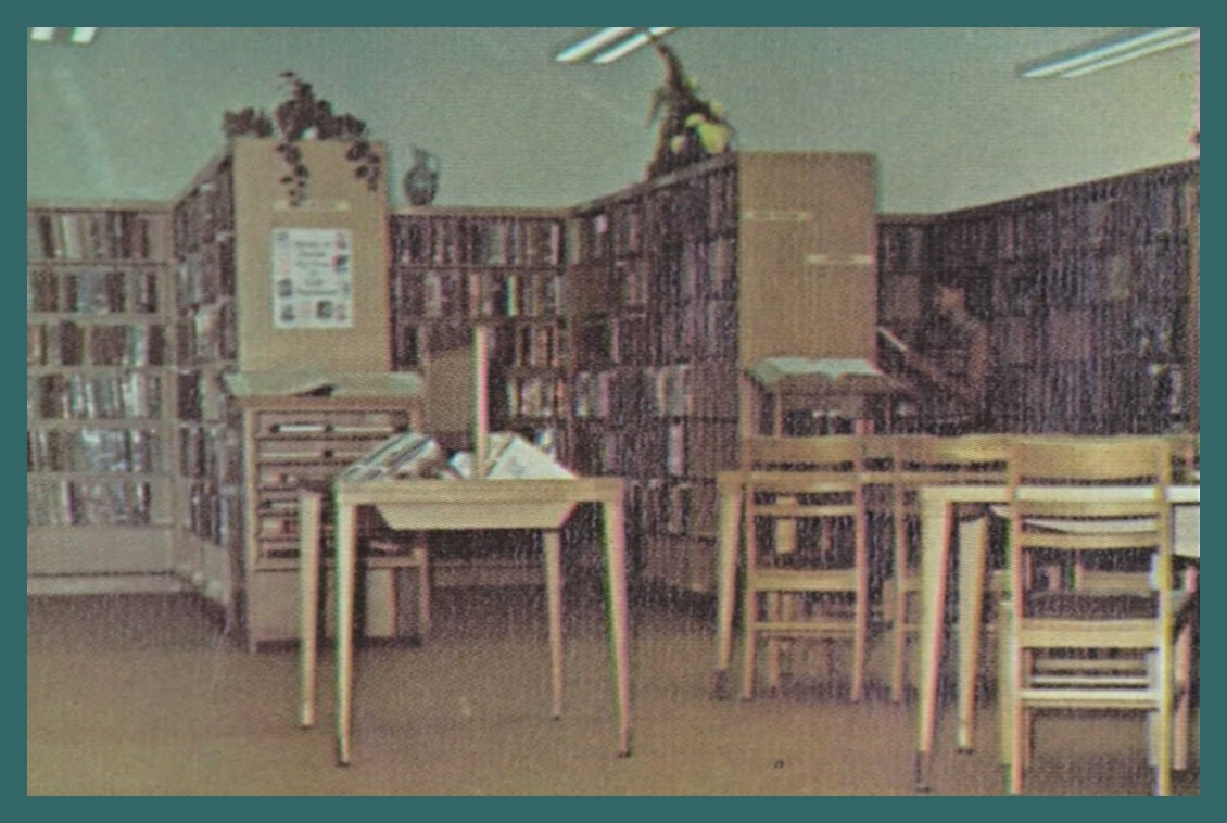 A 1969 color photograph of the library of the Halifax Area High School, Halifax, Dauphin County, Pennsylvania.