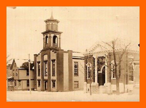 An undated snapshot photograph of three buildings on Market Street in Halifax, Dauphin County, Pennsylvania.