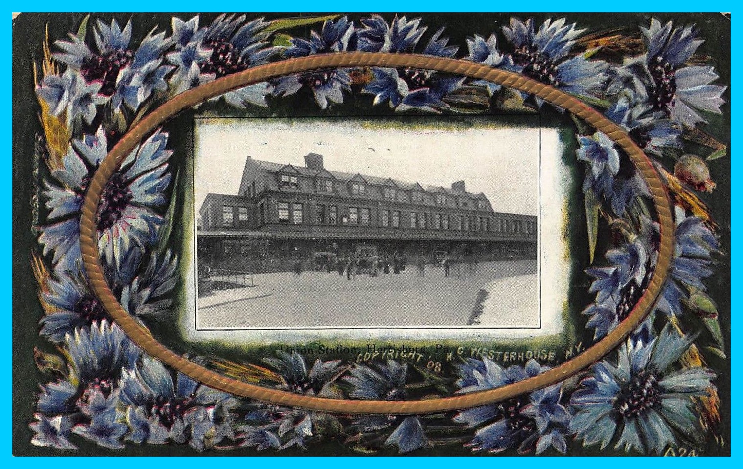 A 1908 H. C. Westerhouse post card view of the Pennsylvania Railroad Station, Harrisburg, Dauphin County, Pennsylvania.