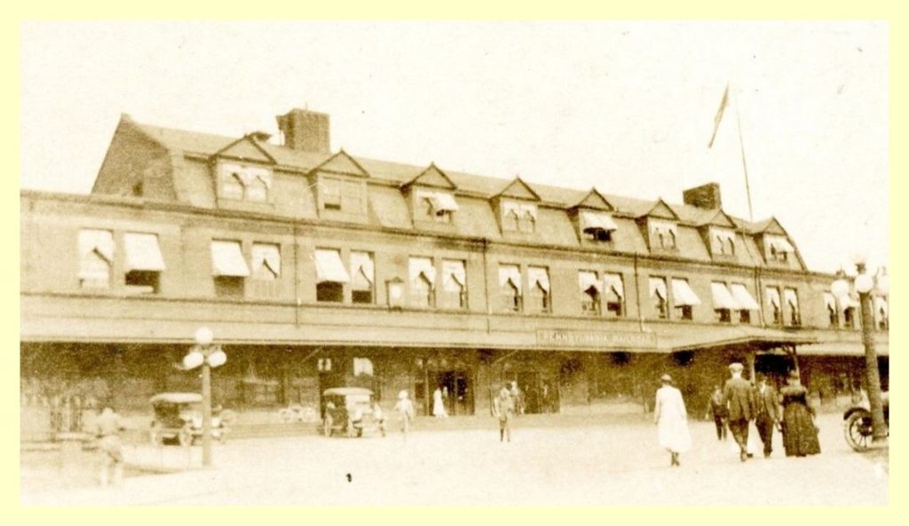 A 1916 photograph of the Pennsylvania Railroad Station at Harrisburg, Dauphin County, Pennsylvania.