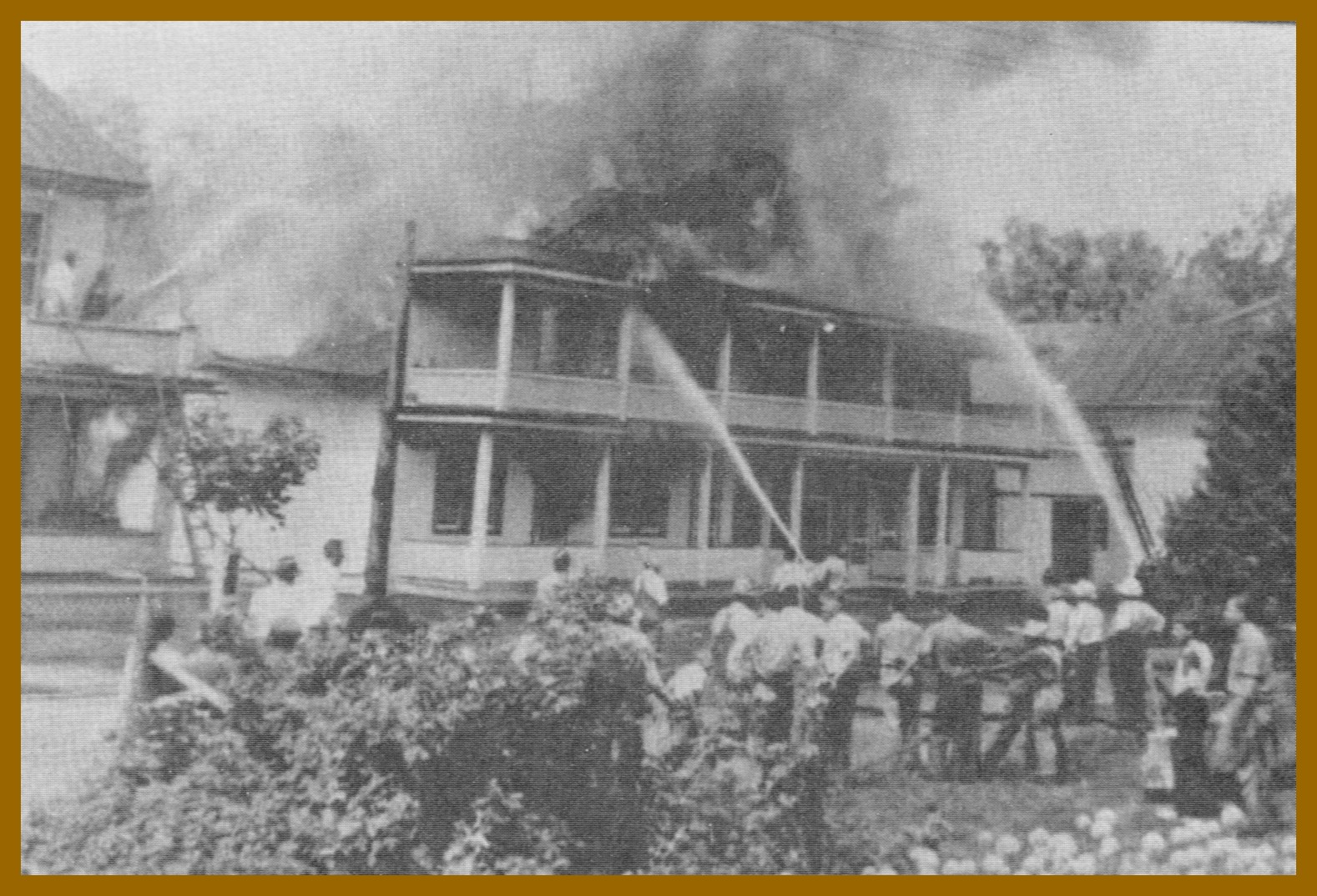 A photograph taken on July 22, 1940, of the Klingerstown Apartment House Fire, Klingerstown, Schuylkill County, Pennsylvania. An early owner of this building was Wilmer Deibert. Boyer’s Hardware Store can be seen at the right.