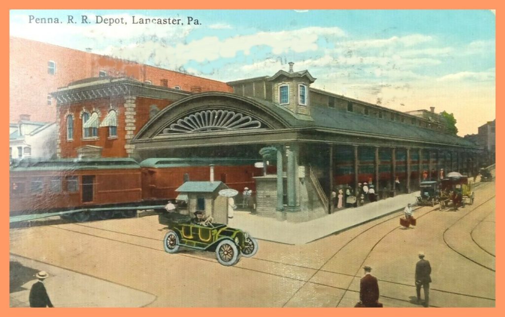 An undated colorized post card view of the Pennsylvania Railroad Station at Lancaster, Lancaster County, Pennsylvania. This major depot was located between Harrisburg and Philadelphia on the railroad’s “Main Line.” Passengers from the Lykens Valley connected at Harrisburg to Philadelphia and New York City and passed by this station en route.