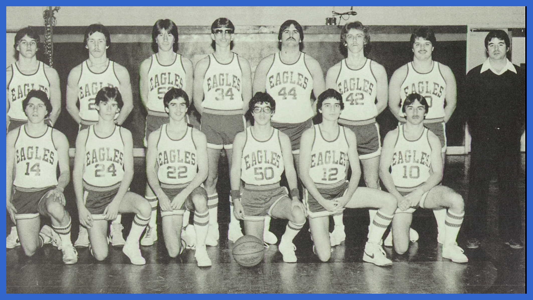 A 1983 photograph of the boys’ basketball team of the Line Mountain High School, Herndon, Northumberland County, Pennsylvania.