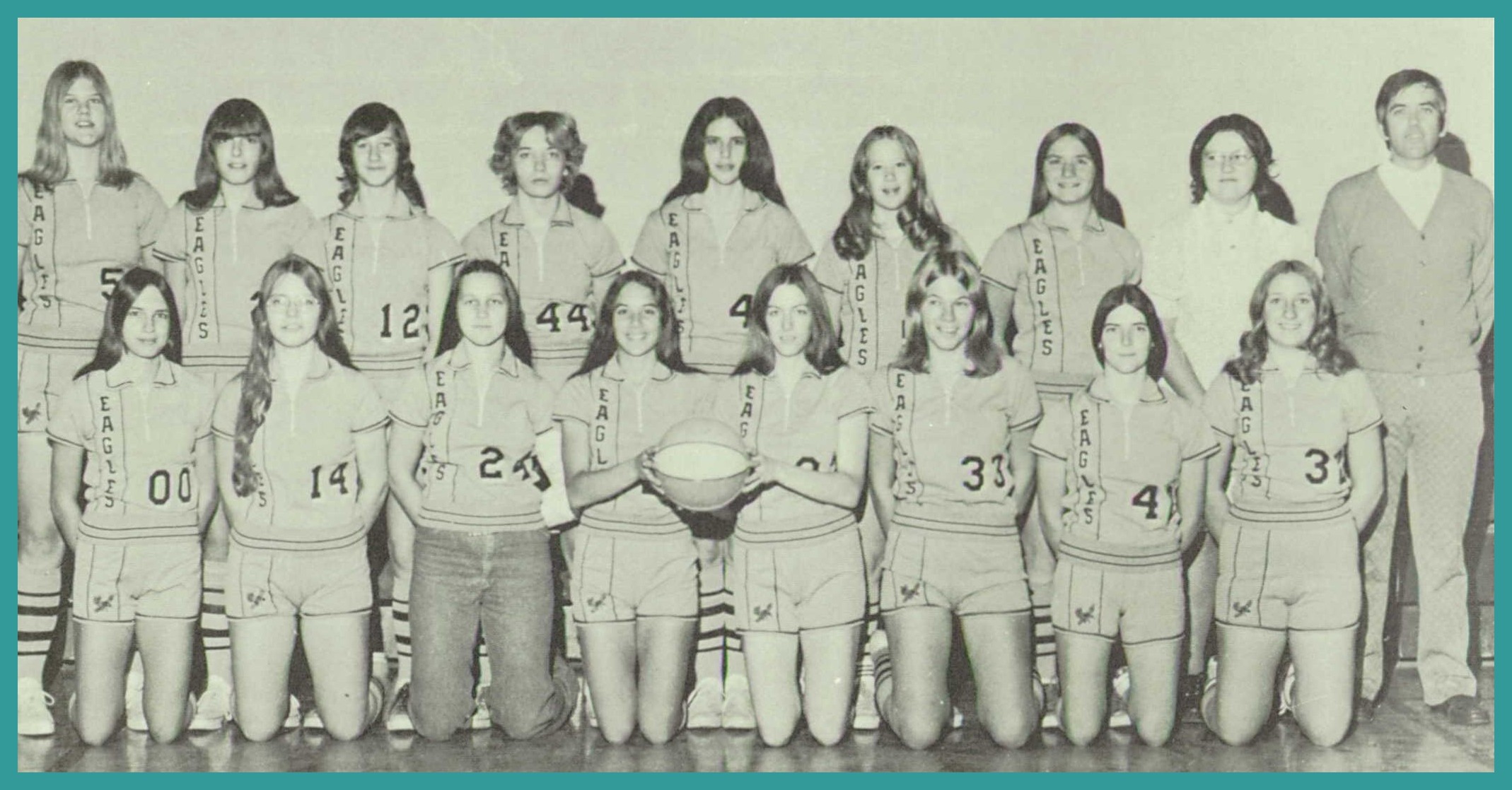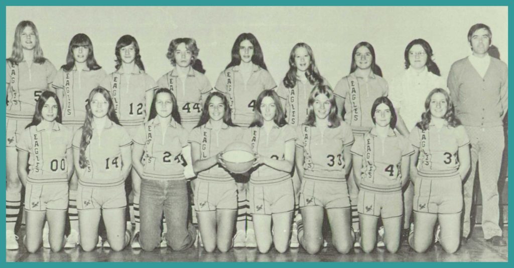 A 1974 photograph of the girls’ basketball team of the Line Mountain High School, Herndon, Northumberland County, Pennsylvania.