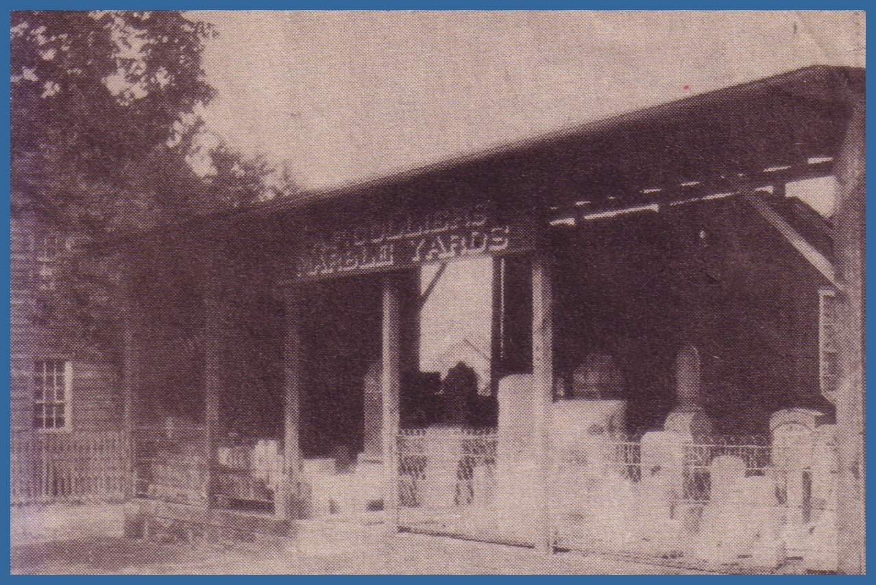 An undated photograph of A. F. Collier‘s Marble Yards, Market Street, Lykens, Dauphin County, Pennsylvania. The photo caption indicated that this business stood on the site that was occupied in 1990 by radio station WQIN.
