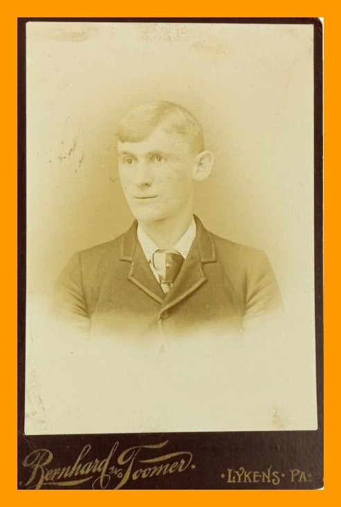 An undated cabinet card photograph taken at the Bernhard and Toomer Photography Studio, Lykens, Dauphin County Pennsylvania.