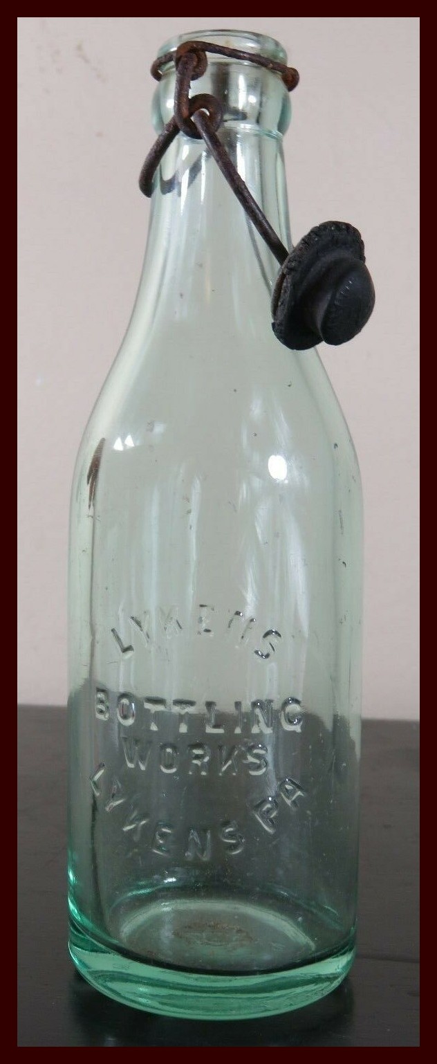A green-glass bottle and stopper from the Lykens Bottling Works, Lykens, Dauphin County, Pennsylvania.