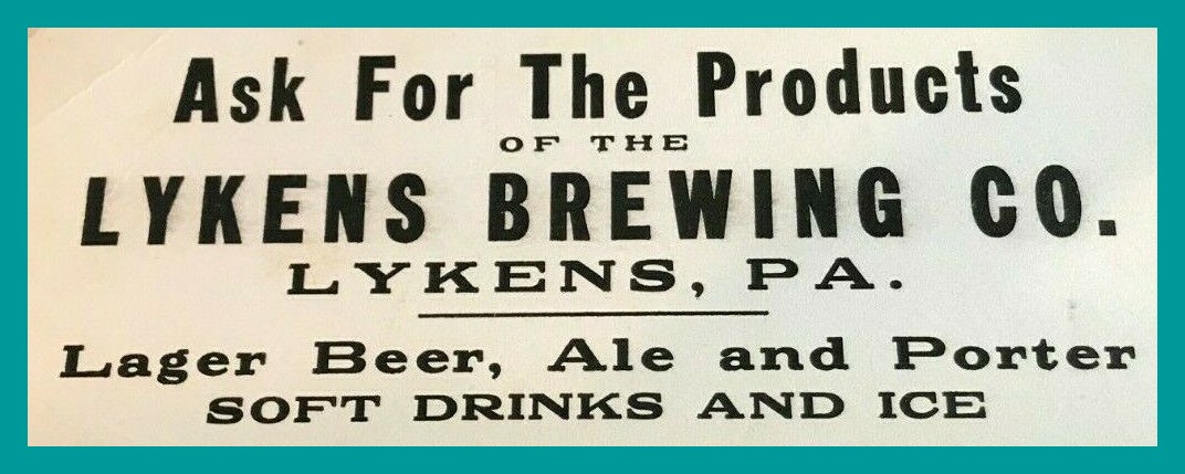 An undated advertising card for the Lykens Brewing Company, Lykens, Dauphin County, Pennsylvania.