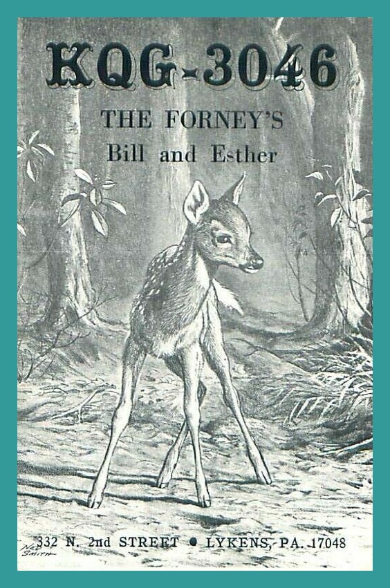 An undated post card for Bill Forney and Esther Forney, “The Forney’s,” Citizens Band Radio, KQG-3046, 332 North Second Street, Lykens, Dauphin County, Pennsylvania 17048.