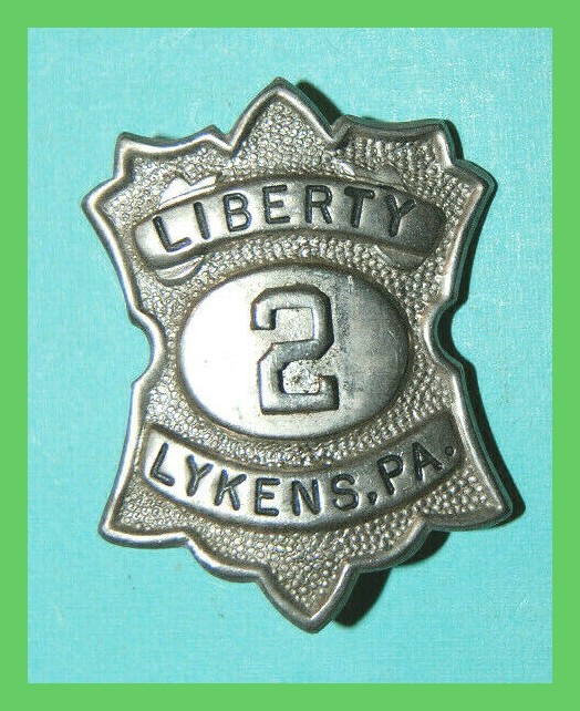 An undated badge for a firefighter from Liberty Hose Company No. 2, Lykens, Dauphin County, Pennsylvania.