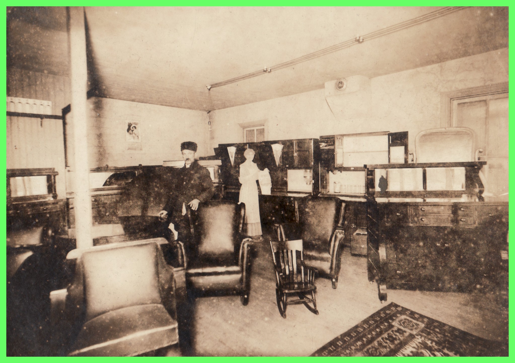 Reiff and Helt were prominent furniture dealers as well as undertakers in the Lykens Valley area. At the time the photo was taken, most “viewings” were held in the home of the deceased rather than in the undertaking establishment, so the establishment of Reiff and Helt was primarily a furniture showroom.