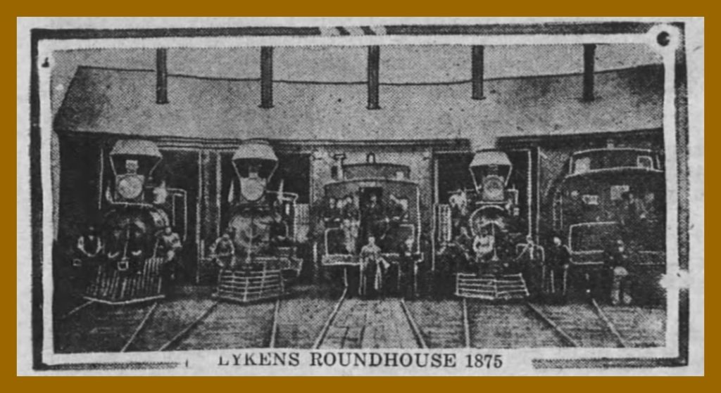 A newspaper photograph of the Lykens Roundhouse in 1875, Lykens, Dauphin County, Pennsylvania. The photo appeared in the Lykens Standard, 22 February 1935 as part of an article which included the names of Lykens High School graduates from 1887 through 1891.
