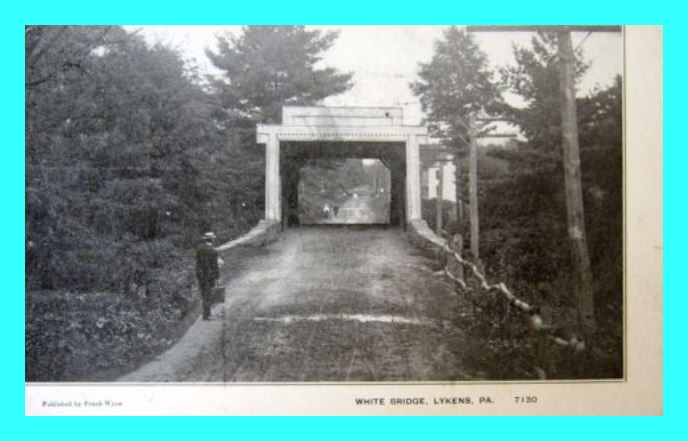 An undated picture post card view of the White Bridge, an old covered bridge at Lykens, Dauphin County, Pennsylvania.