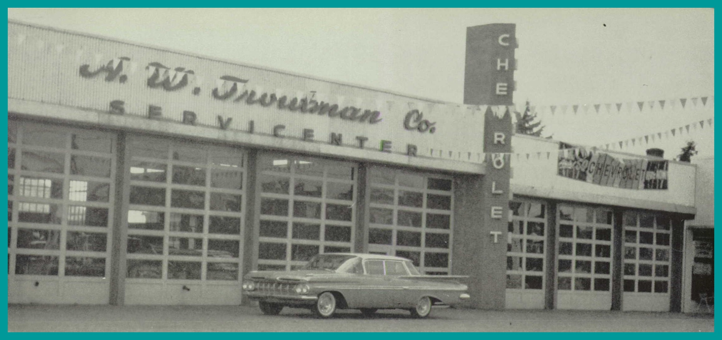 A 1959 advertising photograph for the A. W. Troutman Servicenter, Chevrolet auto dealer at Millersburg, Dauphin County, Pennsylvania.