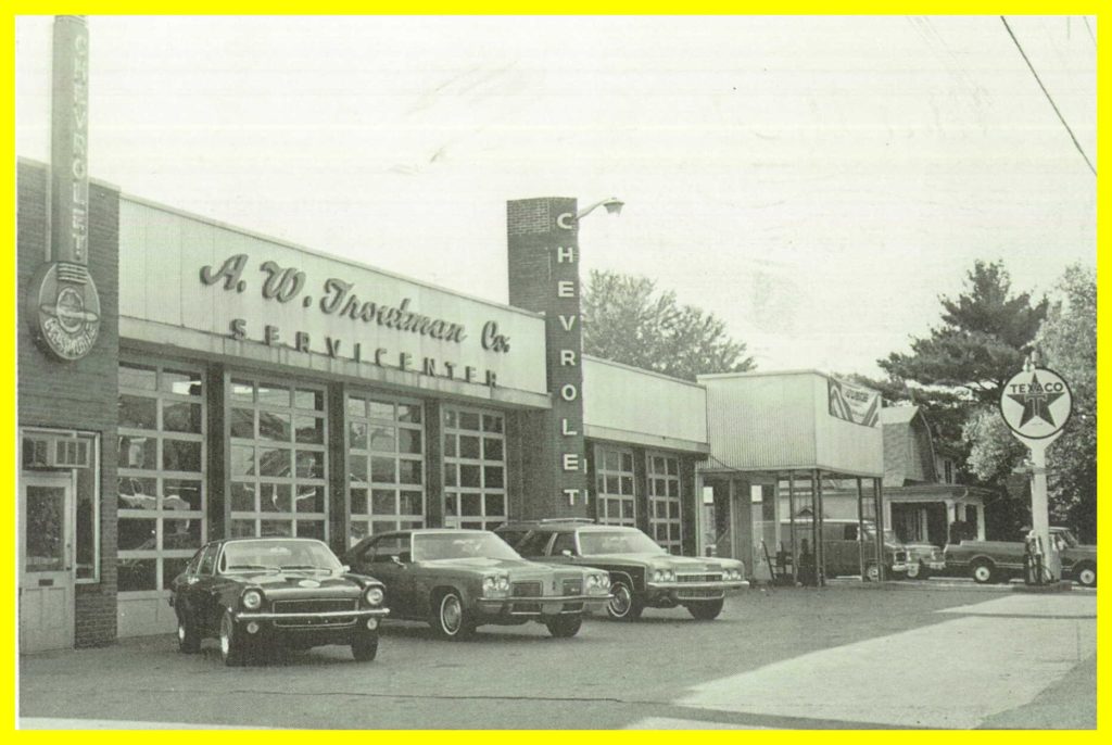A 1972 advertising photograph for the A. W. Troutman Servicenter, Chevrolet auto dealer at Millersburg, Dauphin County, Pennsylvania.