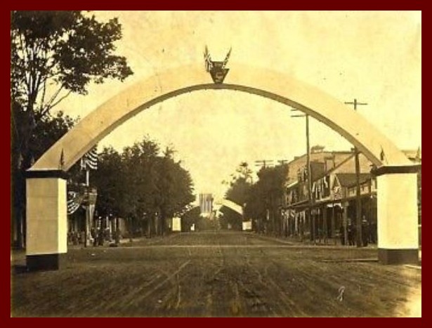 A 1907 photograph of the Centennial Arches over one of the streets in Millersburg, Dauphin County, Pennsylvania.