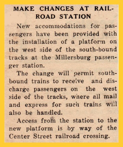 New accommodations for passengers have been provided with the installation of a platform on the west side of the south-bound tracks at the Millersburg passenger station.