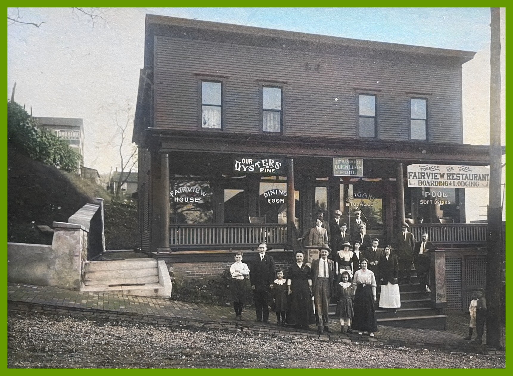 The Fairview House was located just opposite the railroad station. The building is still standing today and is currently a restaurant.