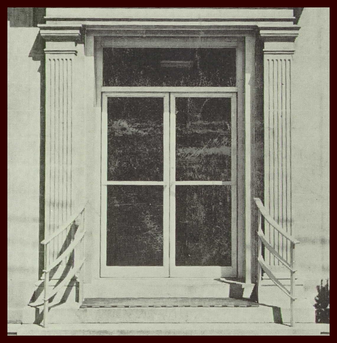 A 1958 advertising photograph for the First National Bank of Millersburg, Millersburg, Dauphin County, Pennsylvania – showing the front entrance of the bank building.