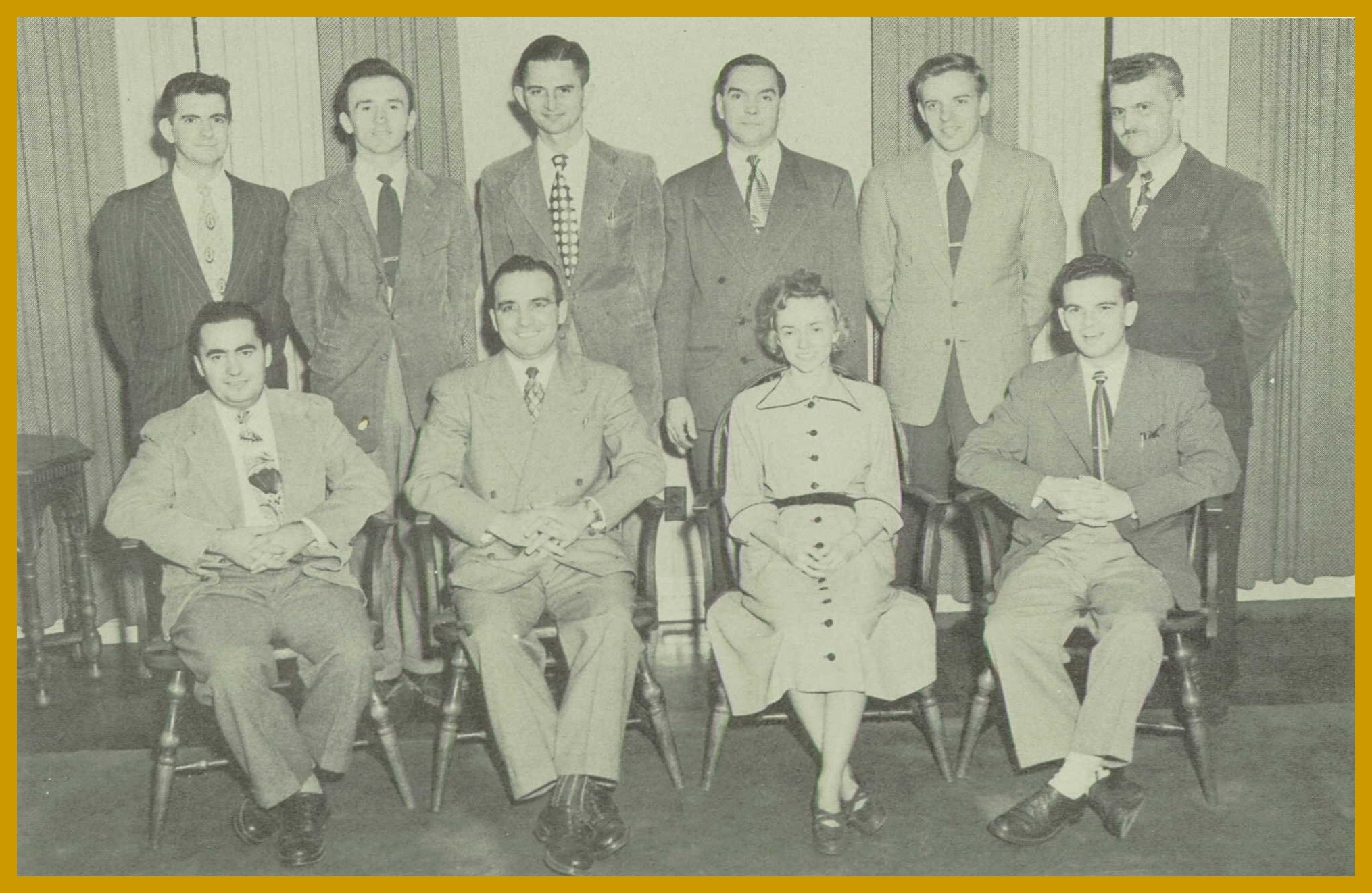 Back Row (standing): Mr. Walter A. Stenger, English; Mr. Robert J. Cooper, instrumental music; Mr. George W. Smith, mathematics; Mr. Charles F. Hughes, science and math; Mr. John G. Grossman, art; Mr. Luke E. Smeltz, vocational agricultural.
