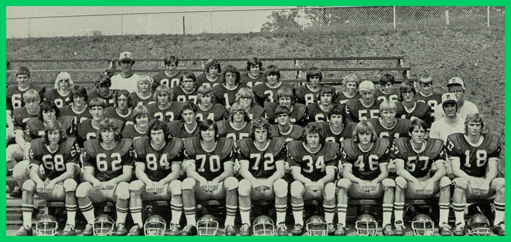 A 1974 photograph of the football team of the Millersburg High School, Millersburg, Dauphin County, Pennsylvania.