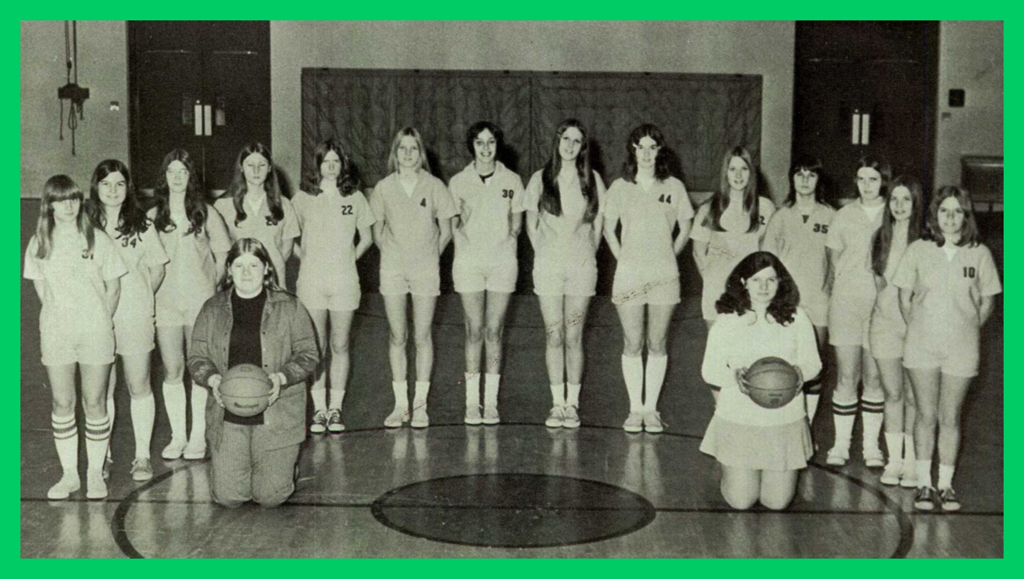 A 1973 photograph of the girls’ basketball team of the Millersburg High School, Millersburg, Dauphin County, Pennsylvania.