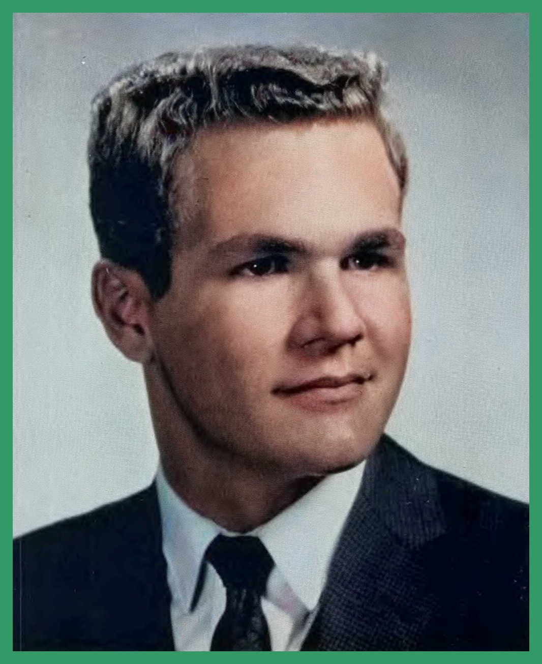 A 1963 colorized portrait photograph of James McLaren Emerick, a member of the senior class of the Millersburg High School, Millersburg, Dauphin County, Pennsylvania.