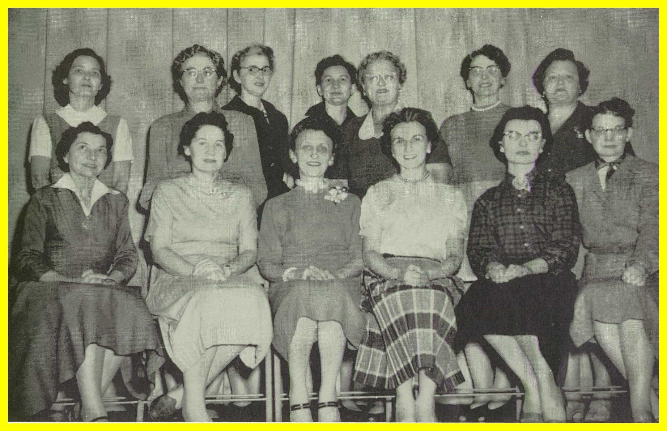 Back Row (standing): Mrs. Hetrick; Miss Schaffer; Miss Kiehl; Miss Walborn; Miss Shuler; Mrs. Heckert; Mrs. Wert.