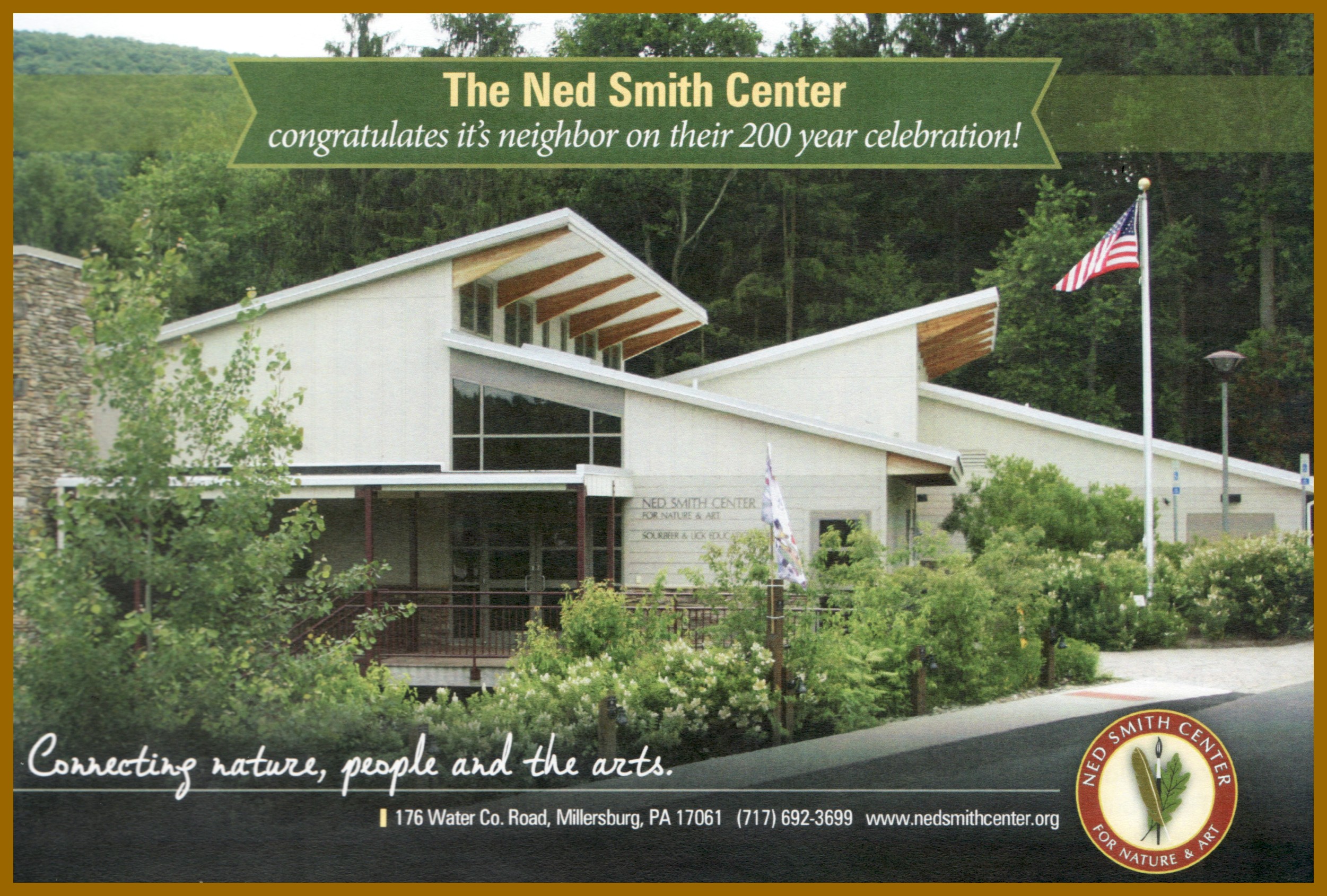 A 2017 advertisement and photograph for the Ned Smith Center, 176 Water Co. Road, Millersburg [Upper Paxton Township], Dauphin County, Pennsylvania.