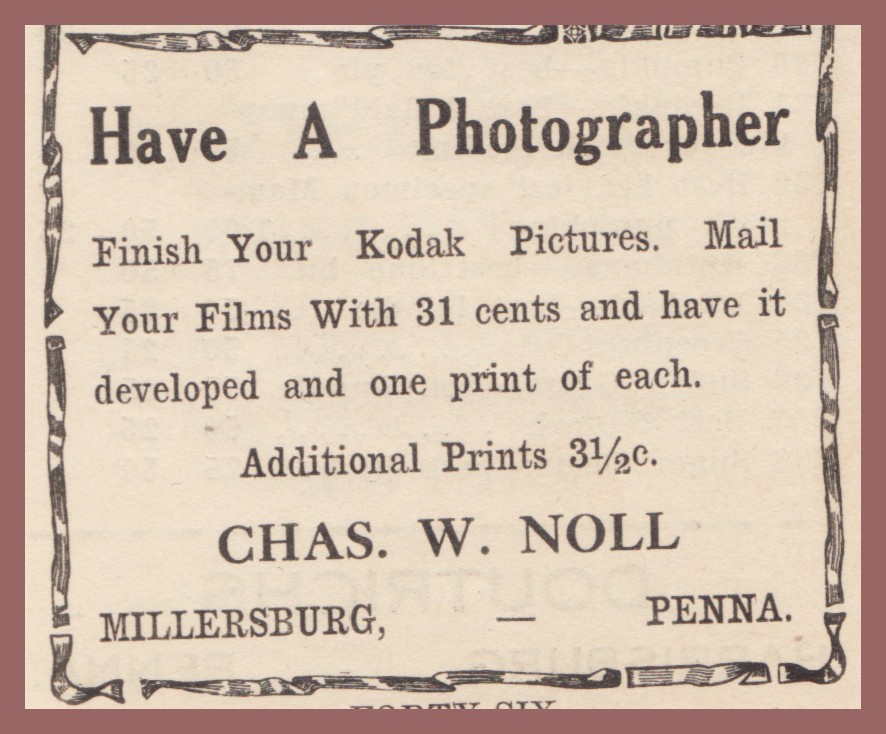 An advertisement for Noll Photographer, Millersburg, Dauphin County, Pennsylvania.