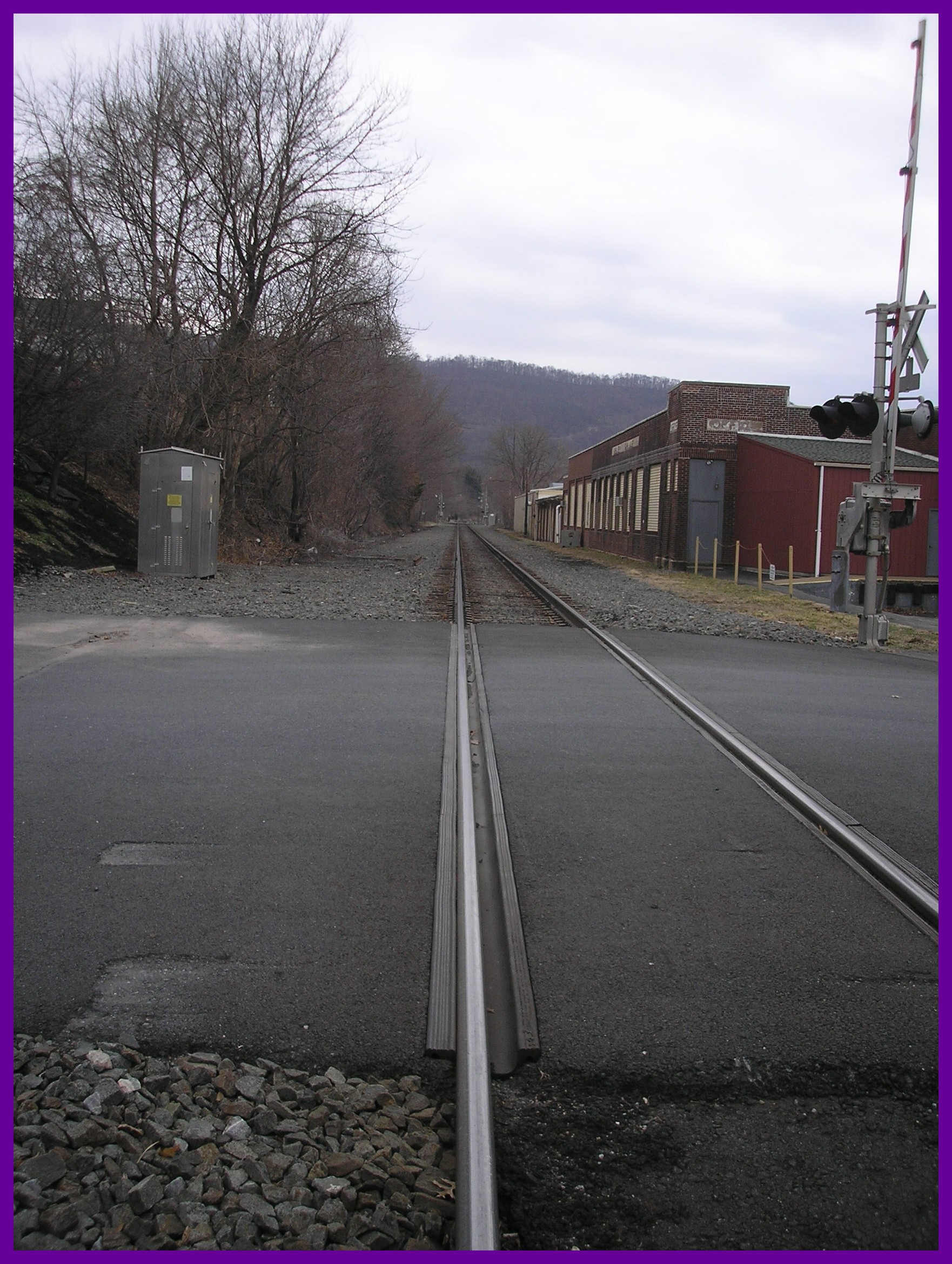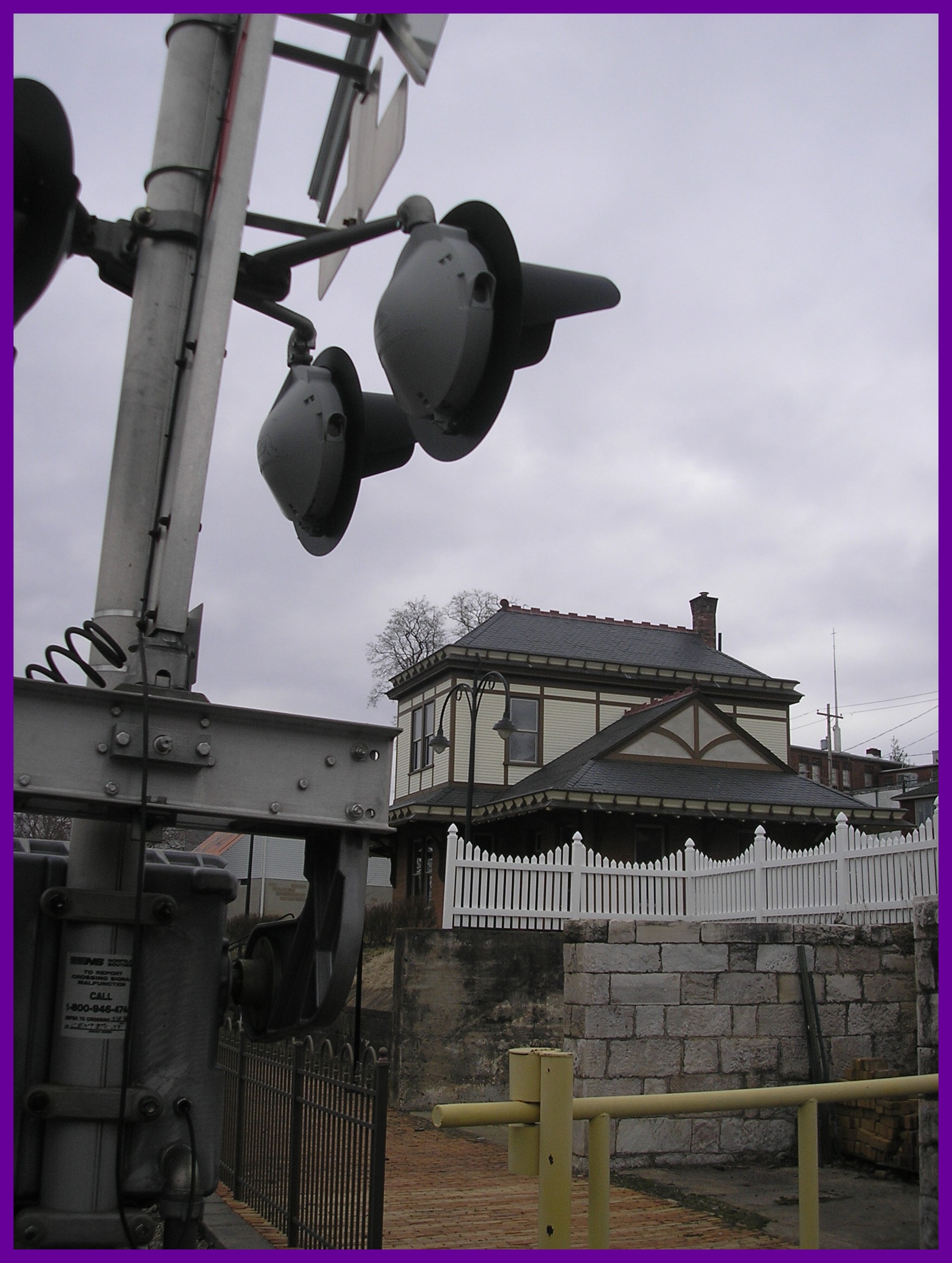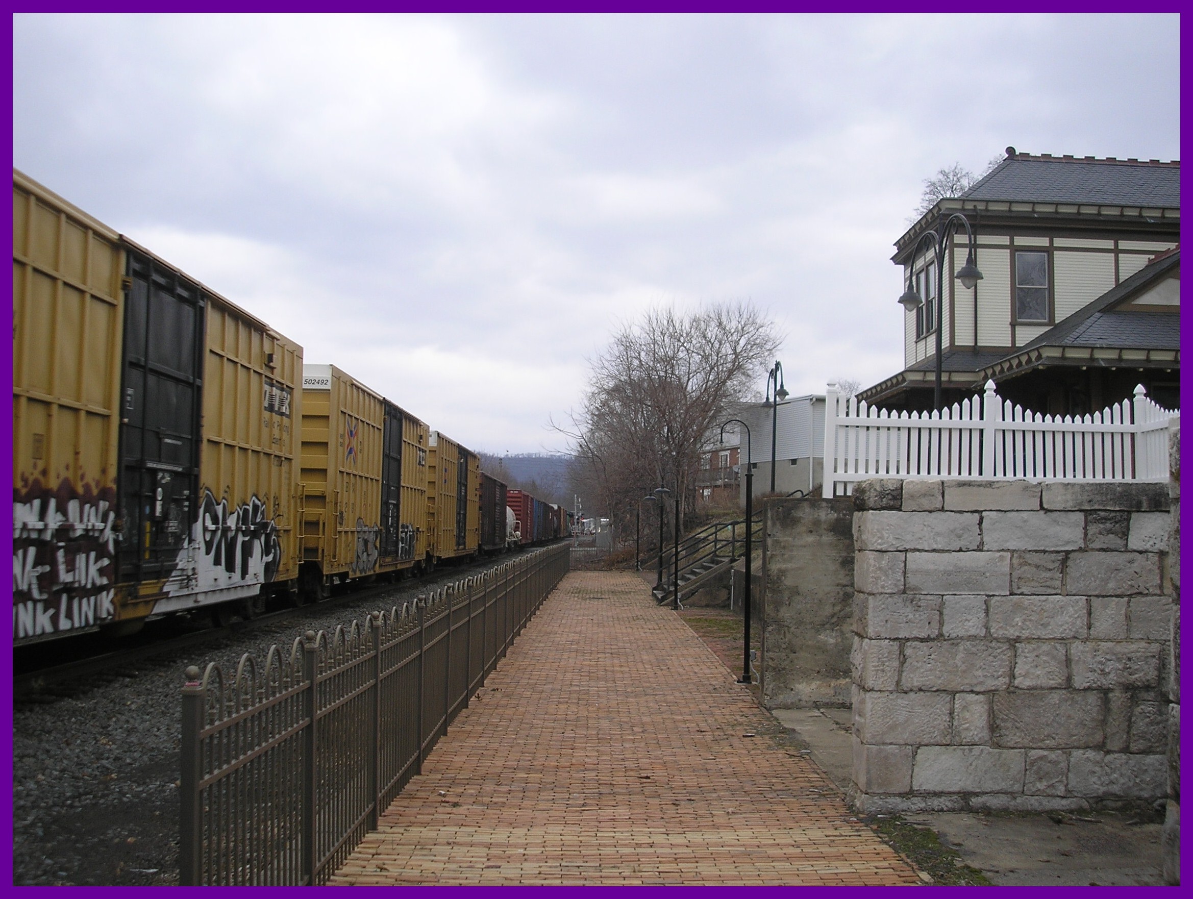 Photographs of the track area in front of the restored Millersburg Railroad Station, Millersburg, Dauphin County, Pennsylvania, taken in 2011.